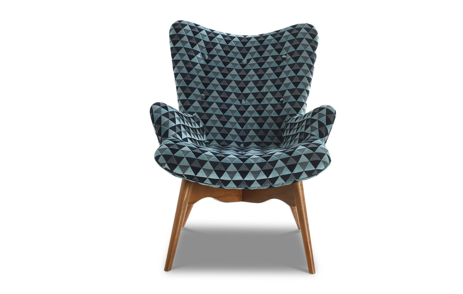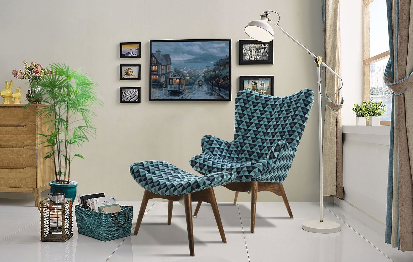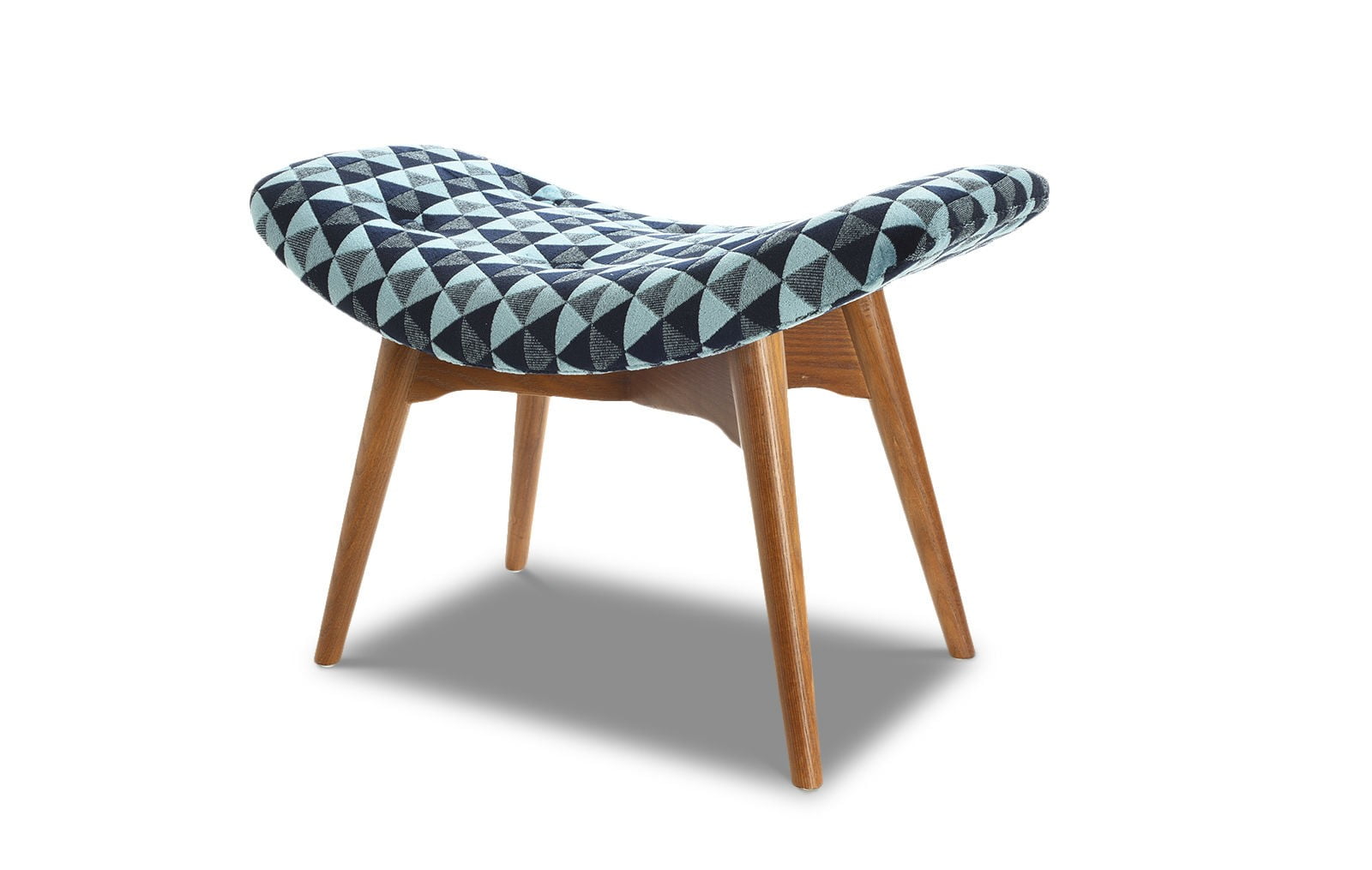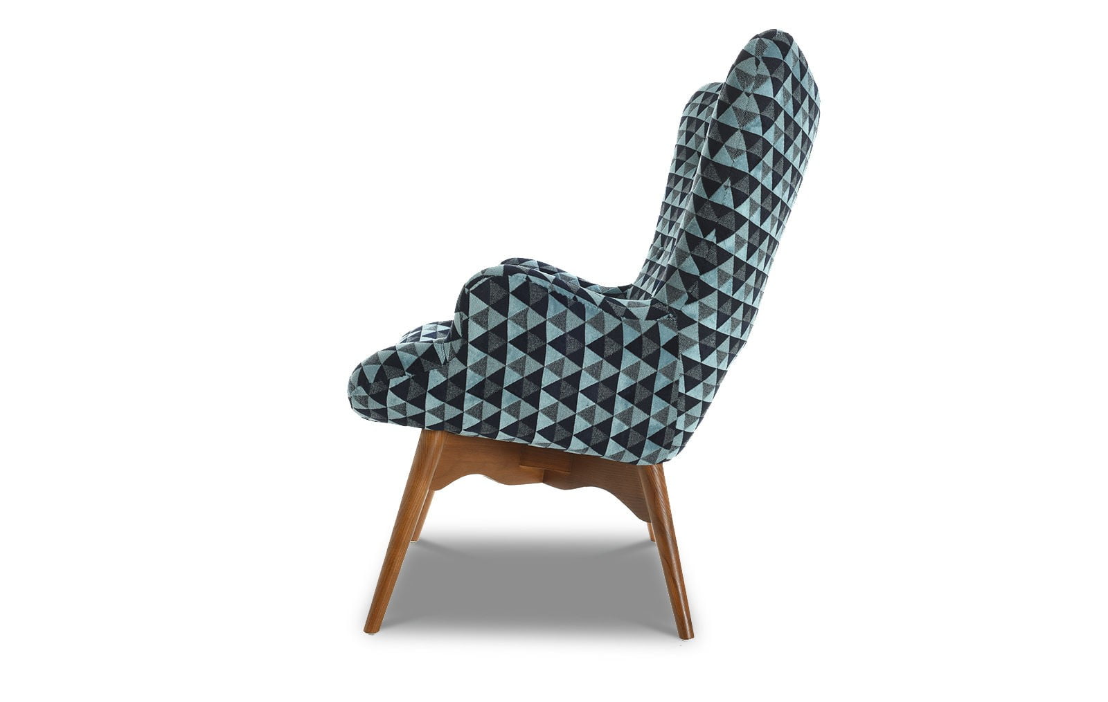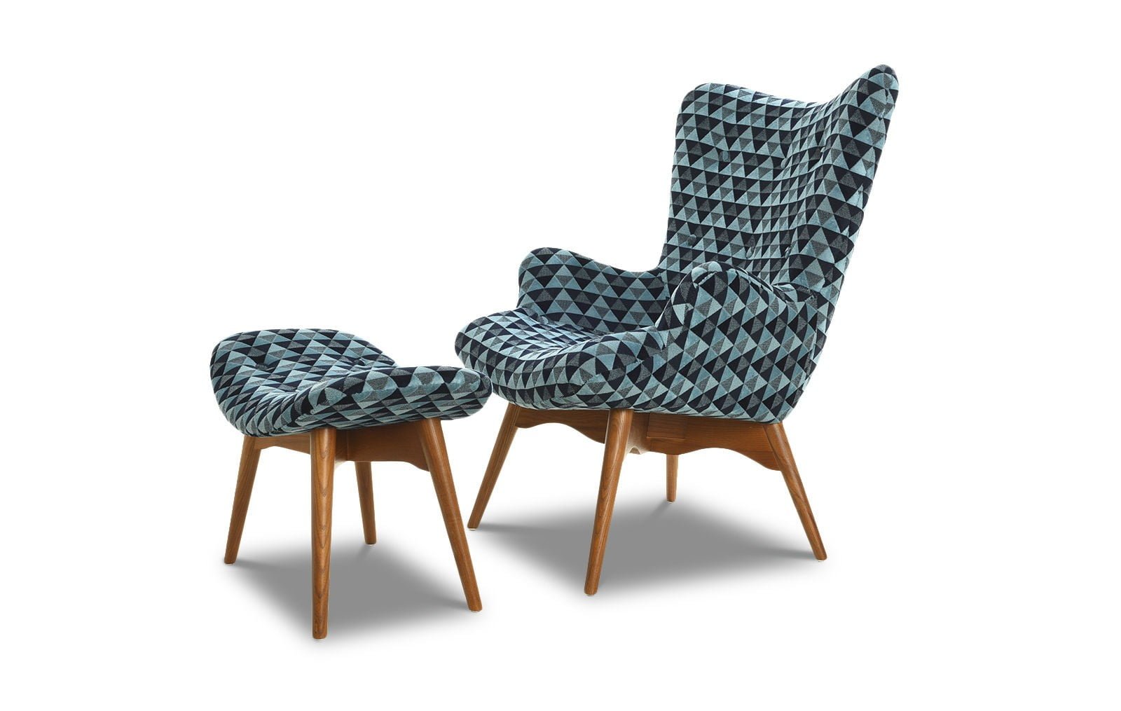 Кресло с оттоманкой Contour, голубой принт/коричневый