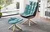 Кресло с высокой мягкой спинкой отличается удобством, в нем можно расслабиться и отдохнуть. Оттоманка может использоваться как подставка для ног или же как мини-столик для книги, телефона, очков.