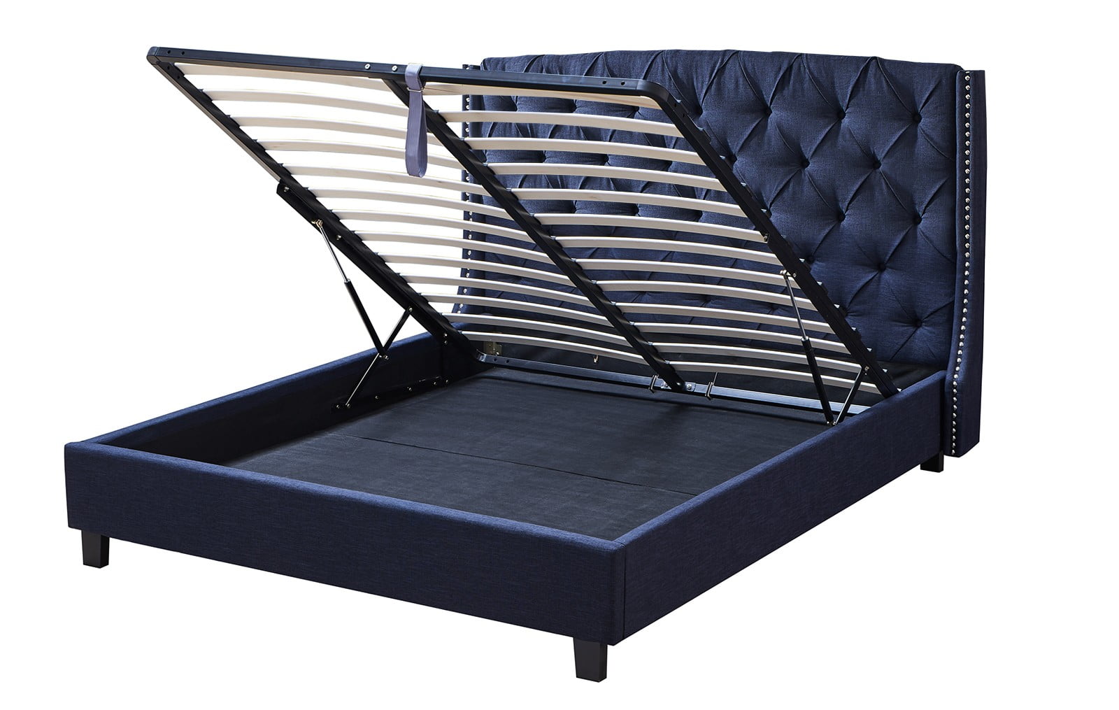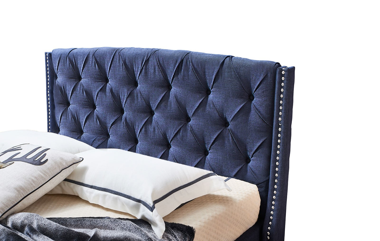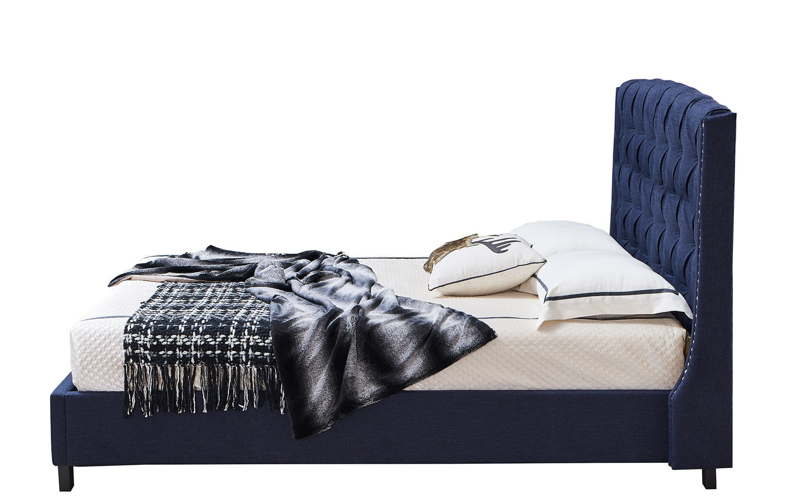 Прочная кровать распределит вес равномерно по всей поверхности, благодаря ортопедической решетке. Дополнительную высоту придают ножки и спинка. Темно-синий цвет выигрышно смотрится в окружении светлой гаммы.