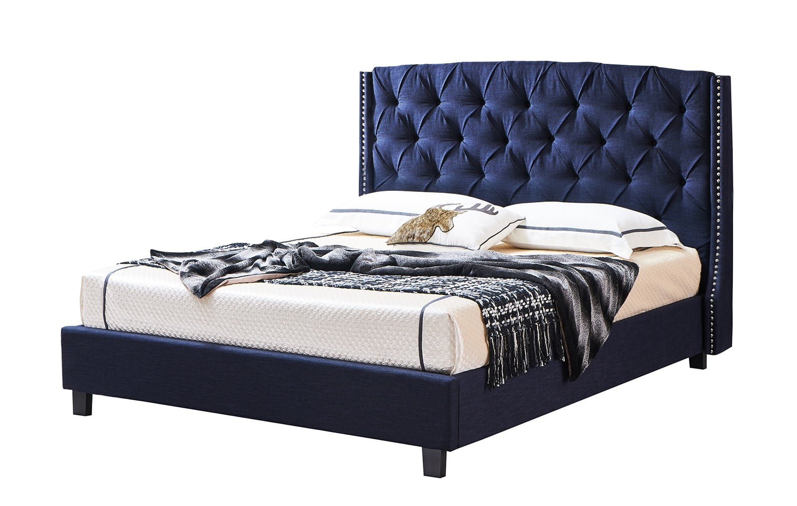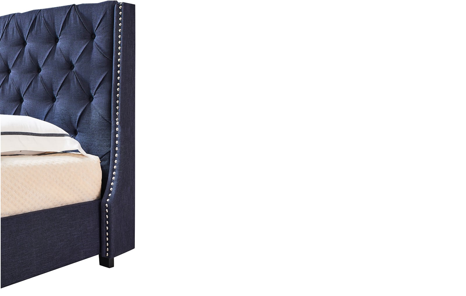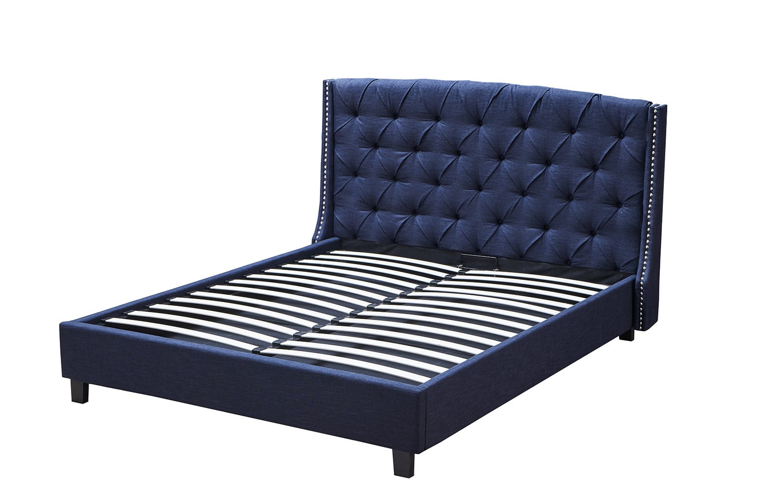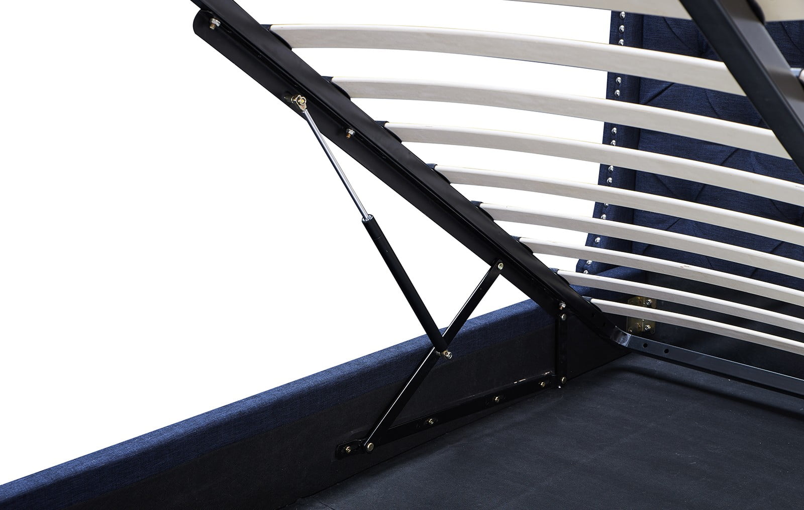 Прочная кровать распределит вес равномерно по всей поверхности, благодаря ортопедической решетке. Дополнительную высоту придают ножки и спинка. Темно-синий цвет выигрышно смотрится в окружении светлой гаммы.