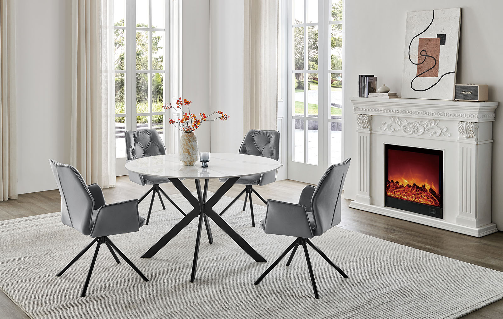 Комплект мебели, состоящий из круглого стола Elisabeth (Элизабет) и 4 стульев Estella (Эстелла), имеет эффектный современный дизайн и сразу же обращает на себя внимание.