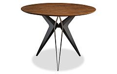 Стол привлекает внимание сочетанием ореховой столешницы и оригинального металлического основания.