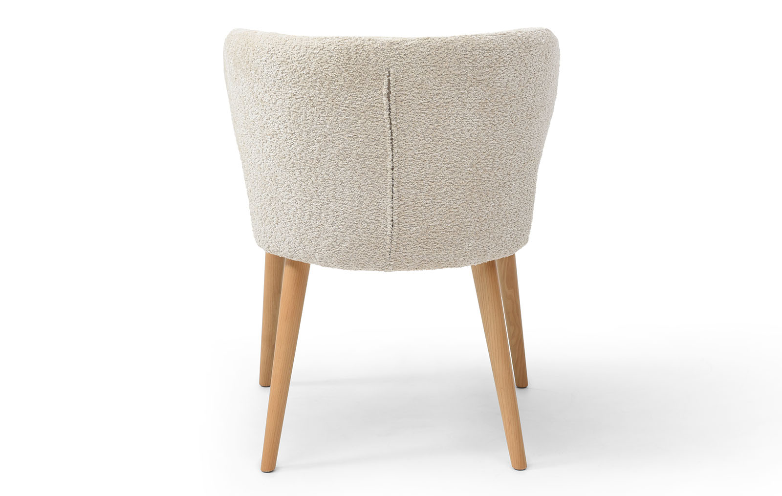 Обеденный стул Simona имеет обивку из ткани тедди и ножки из дерева в оттенке ясеня.