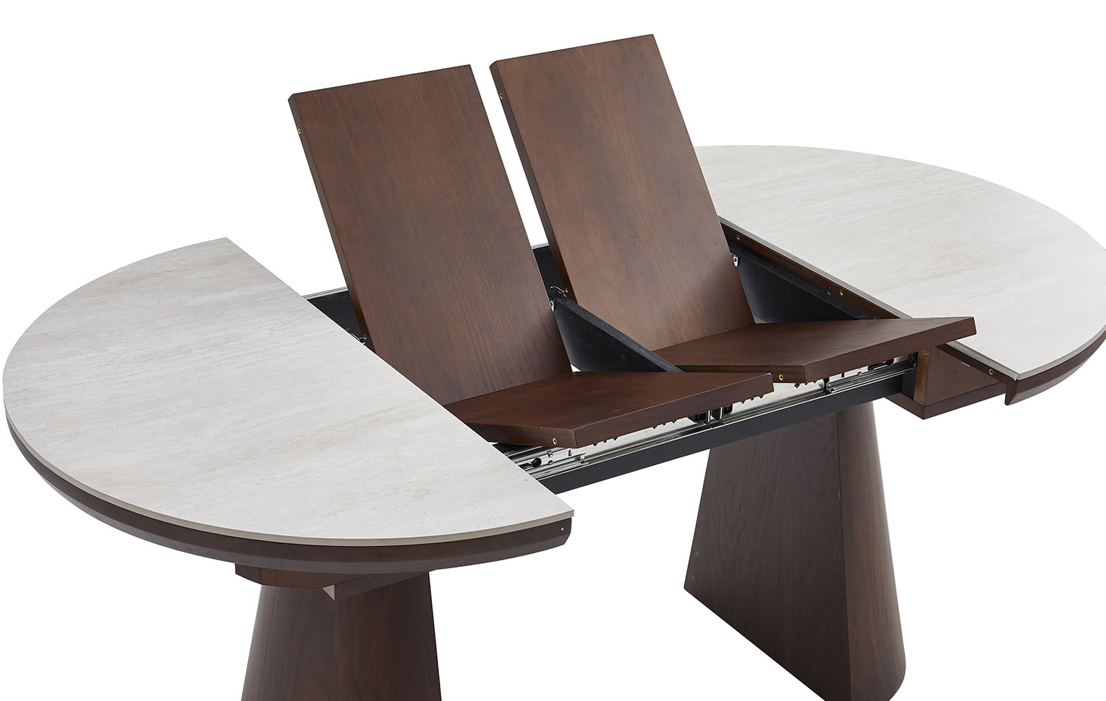 Стол имеет 2 вставки по 30 см, которые можно использовать по отдельности или вместе, что делает стол максимально универсальным.