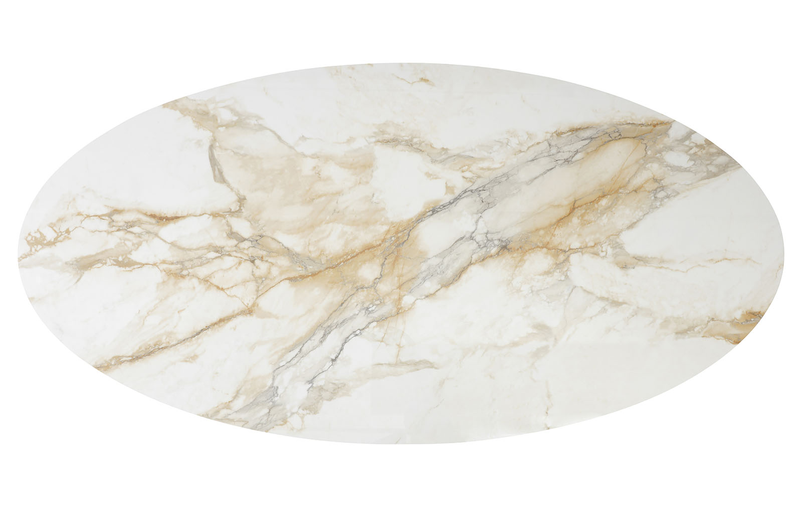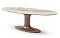 Столешница изготовлена из керамики толщиной 6 мм на слое стекла толщиной 8 мм, ее размер - 240*120 см. Элегантная овальная форма мягко вписывается в пространство.
