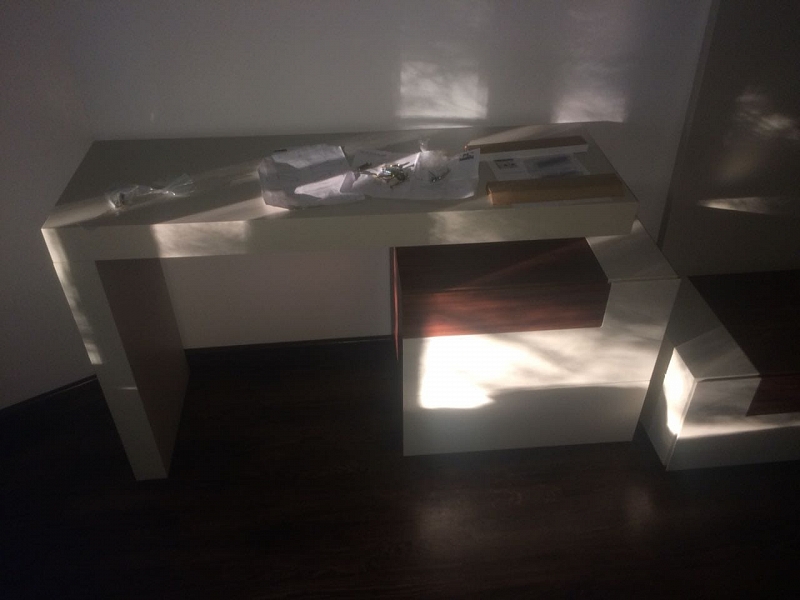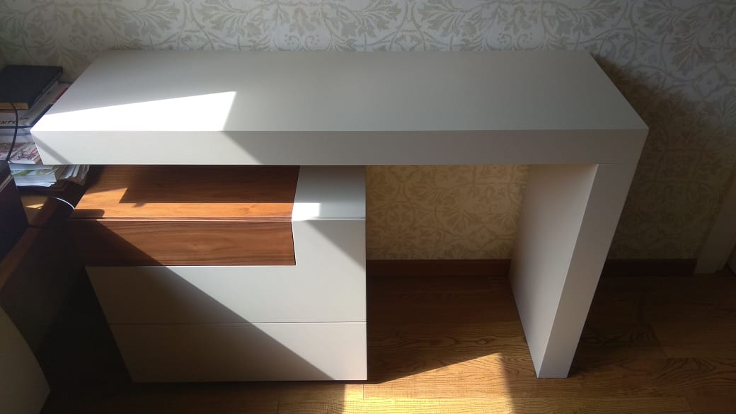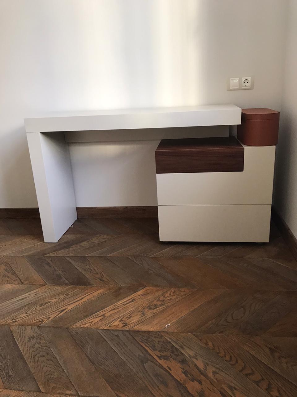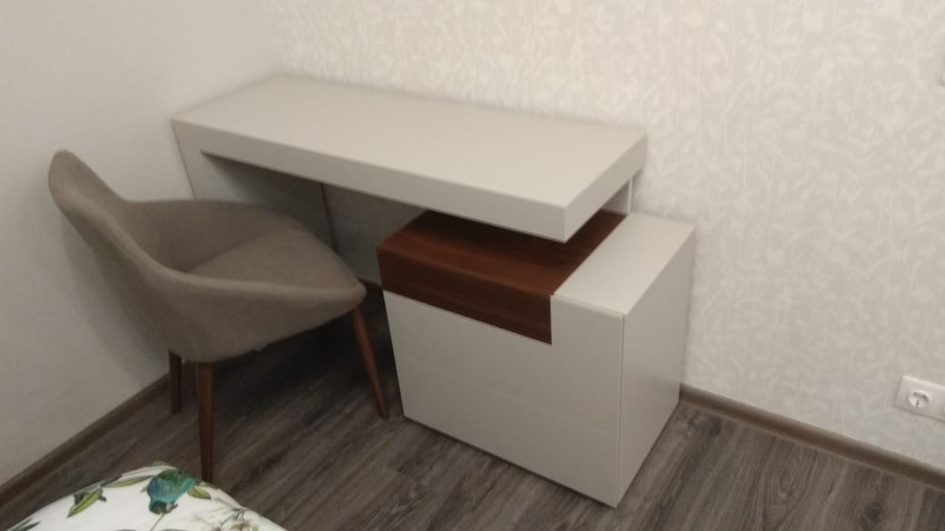 Стол сделан из МДФ, отделка матовая. Выдвижные ящики оснащены механизмами плавного закрывания.