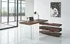 Современный письменный стол, для создания которого использованы прозрачное закаленное стекло (Tempered glass) толщиной 12 мм и MDF в шпоне ореха.