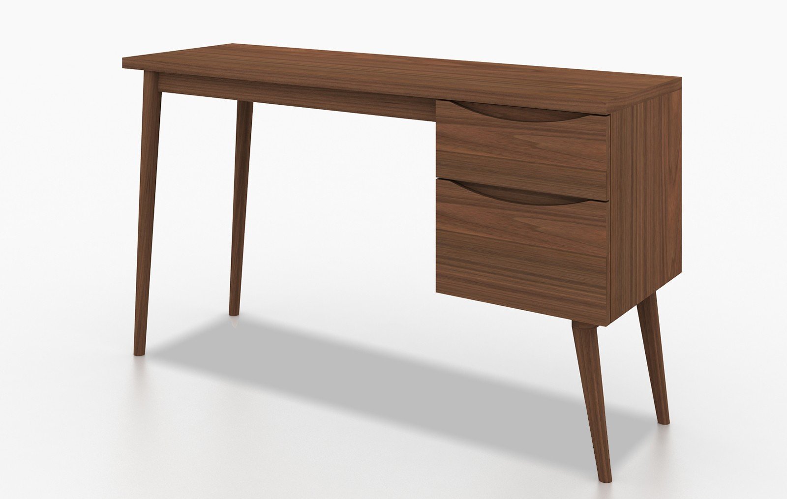 Предельная простота модели позволяет говорить о ее универсальности. Такой стол будет хорошо смотреться как в кабинетных интерьерах, так и в спальнях.