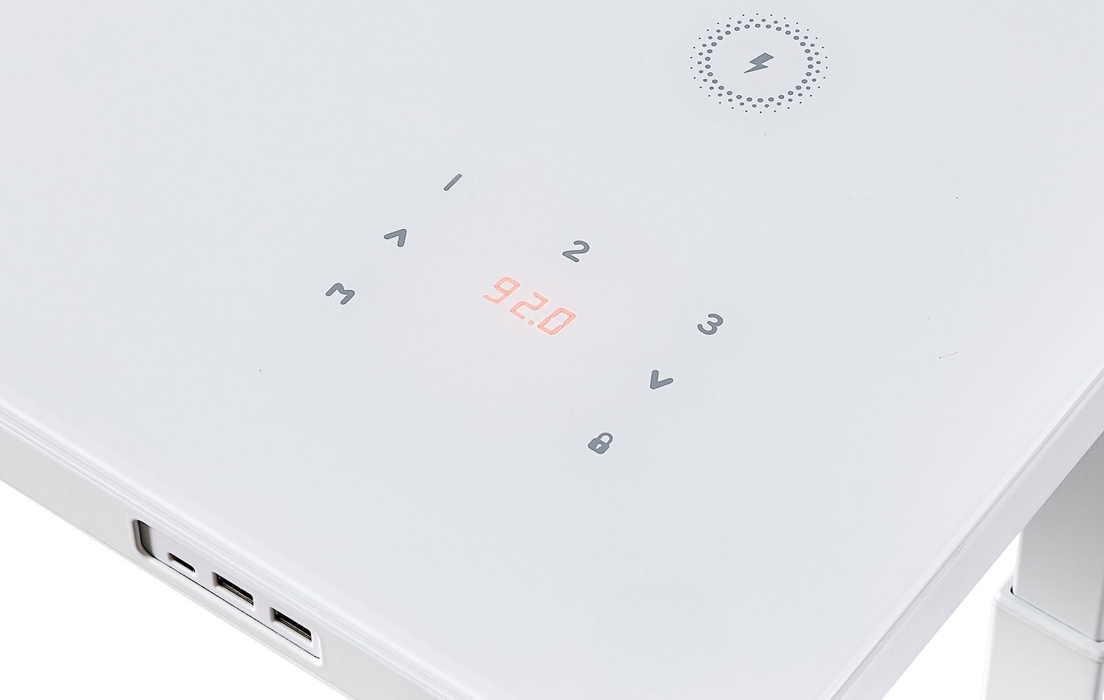 Функционал: USB-порты для зарядки (2 шт) и один USB-порт типа C, 10W беспроводное зарядное устройство, сенсорные кнопки, безопасная блокировка, запоминание 3х уровней высоты.
