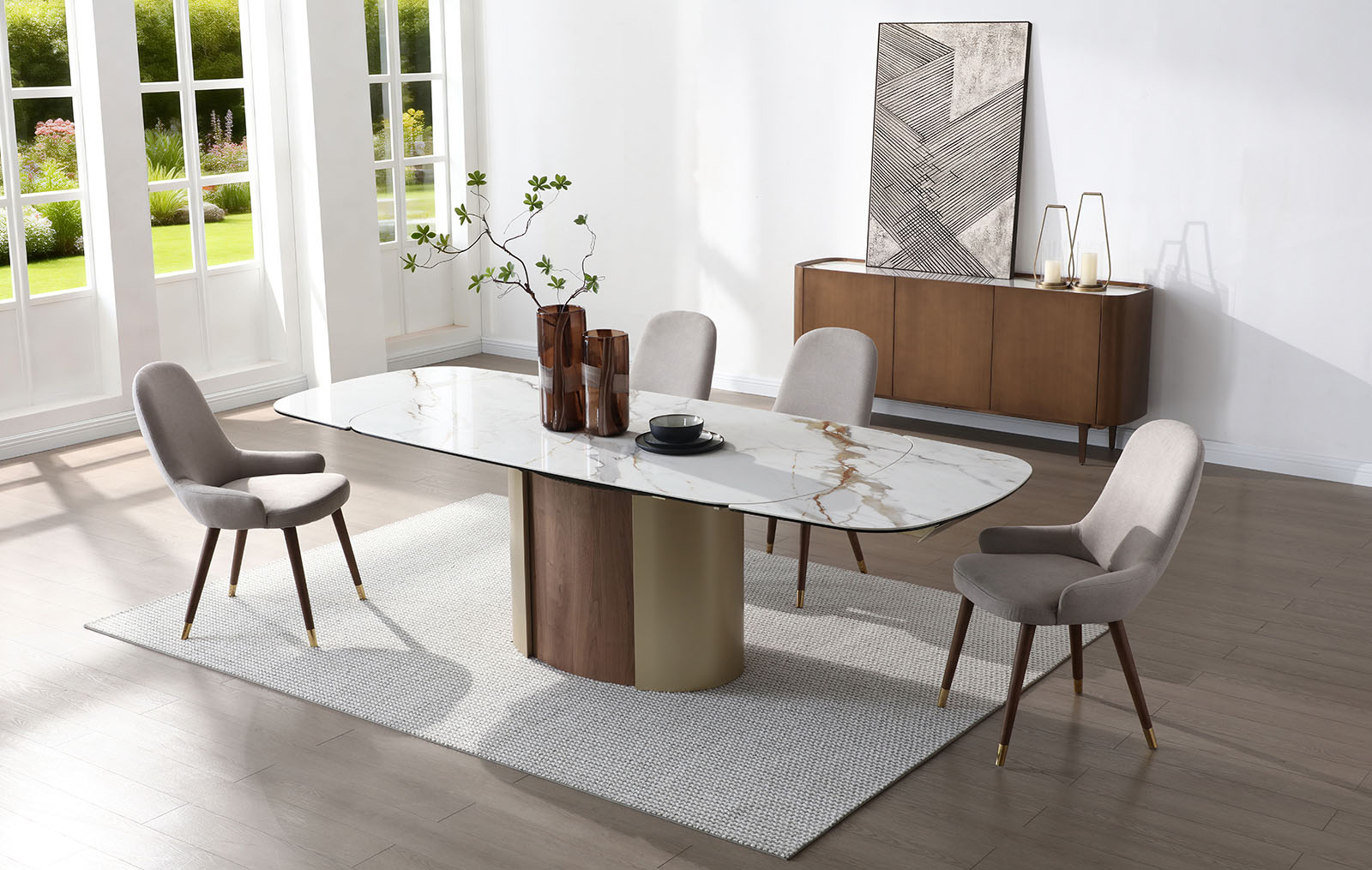 Благодаря раскладному механизму стол легко трансформируется, позволяя комфортно разместить больше гостей, не теряя эстетики.