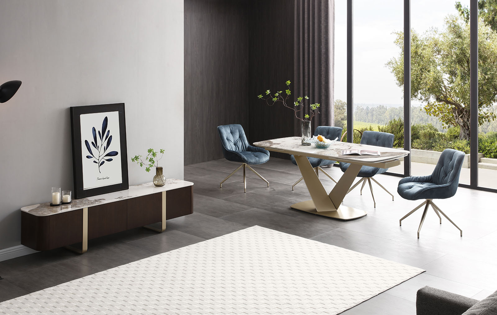 Сочетание керамики и золота гармонично вписывается как в изысканные столовые комнаты в стиле ар-деко, так и в современные фьюжн-интерьеры.