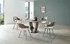 Стулья с подлокотниками и обивкой из шенилла нейтрального бежевого оттенка идеально гармонируют со столом и являются очень комфортными за счет поворотного механизма.