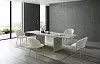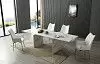 Комплект мебели, в который входит раскладной стол Santorini (Санторини) и 4 стула Renzo (Рэнцо), с первого взгляда поражает своим изысканным дизайном. Стол с прямоугольной столешницей из керамики и необычными ножками из двуслойной керамики сразу же обращает на себя внимание и гармонично сочетается со стульями в белой экокоже. Керамическая столешница очень удобна в уходе, она не боится воздействия влаги и отличается высокой износостойкостью. Длина ее может увеличиваться со 180 см до 270 см, а потому за таким столом поместится и достаточно большая компания.