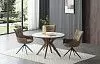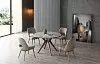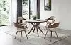 Набор мебели, состоящий из обеденного стола Tango (Танго) и четырех стульев Max (Макс), отлично подойдет для столовой или кухни, оформленных в скандинавском стиле или подобных ему. Стулья с высокими спинками, обитые мягким бежевым велюром, который красиво сочетается с деревянными ножками насыщенного орехового оттенка, выглядят очень уютными, комфортными и так и манят присесть.
