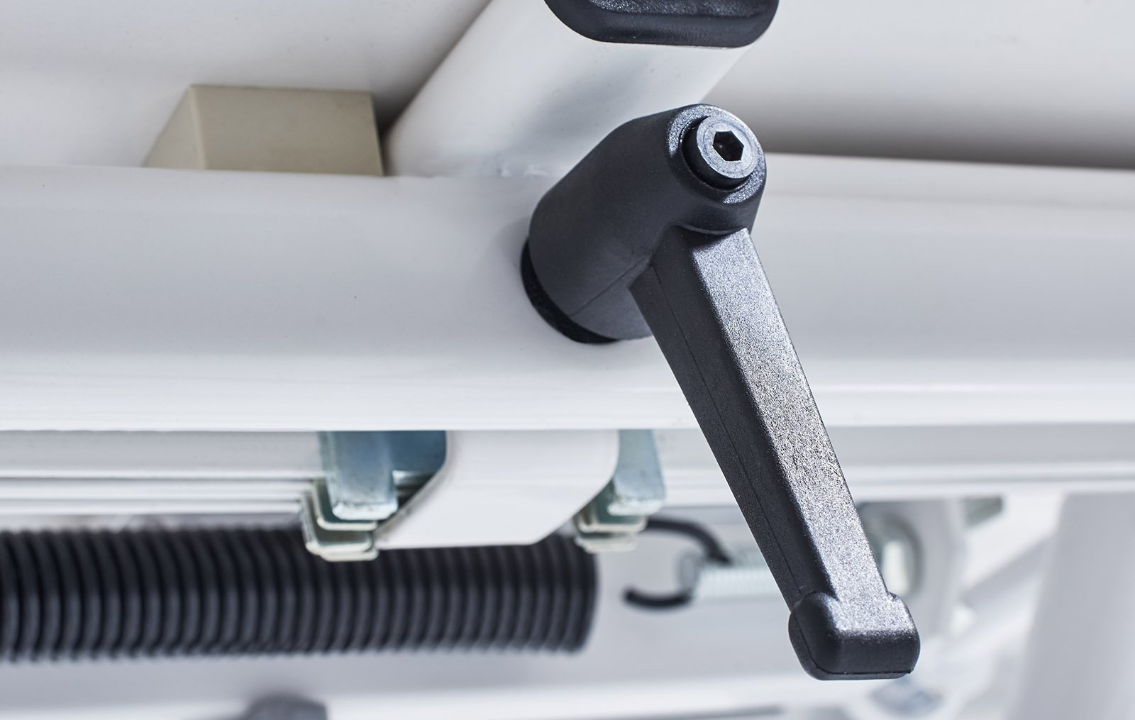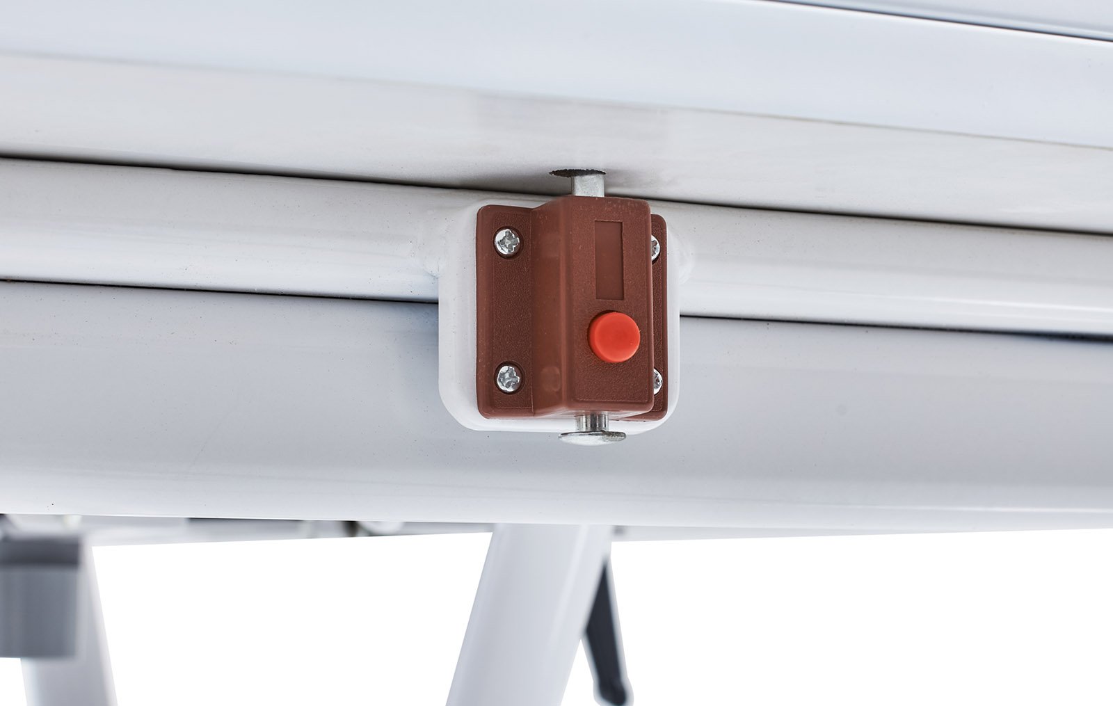 Перед раскладыванием стола убедитесь, что фиксатор находится в раскрытом положении.