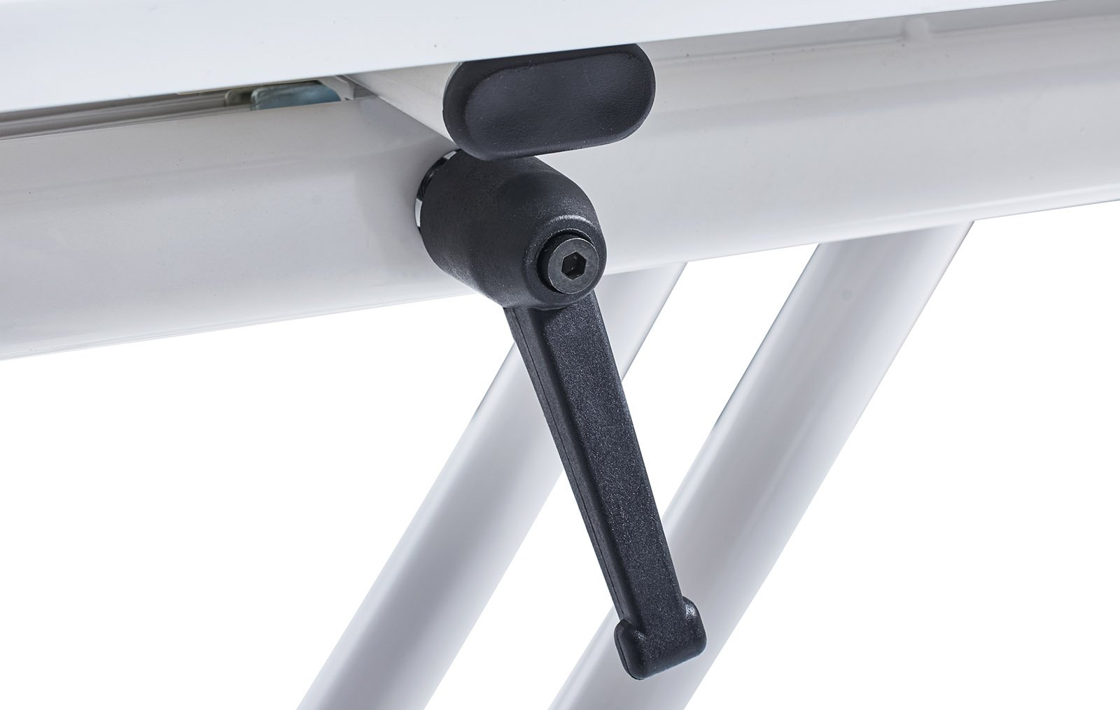 Размер столешницы: в сложенном виде - 45х100 см, в разложенном виде - 90x100 см. Высота регулируется от 18 до 77 см.