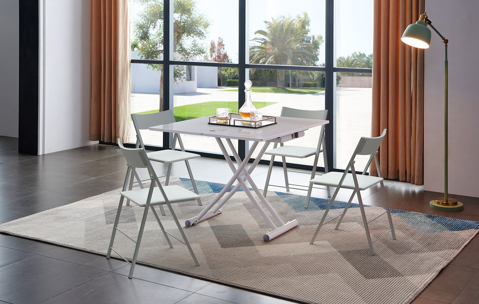 Стильная и предельно лаконичная модель. Стол-трансформер Bethany (Бетани), который может выступать в роли как журнального, так и обеденного. Высота изделия и размеры столешницы легко меняются в зависимости от ситуации. Ножки и столешница - белого цвета. Это делает стол универсальным приобретением как с точки зрения легкости его внедрения в интерьер, так и с точки зрения его визуальной легкости и компактности.