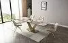 Раскладной обеденный стол Victoria (Виктория) имеет глянцевую керамическую столешницу толщиной 11 мм на подстолье в оттенке золотистый шампань.