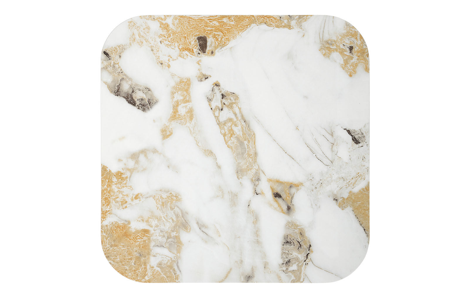 Столешница с золотистыми узорами на светлом фоне изготовлена из глянцевой керамики толщиной 12 мм, что даёт ей такие преимущества, как износостойкость, долговечность, устойчивость к царапинам, пятнам, температуре и влаге. Керамика легко очищается от любых загрязнений.