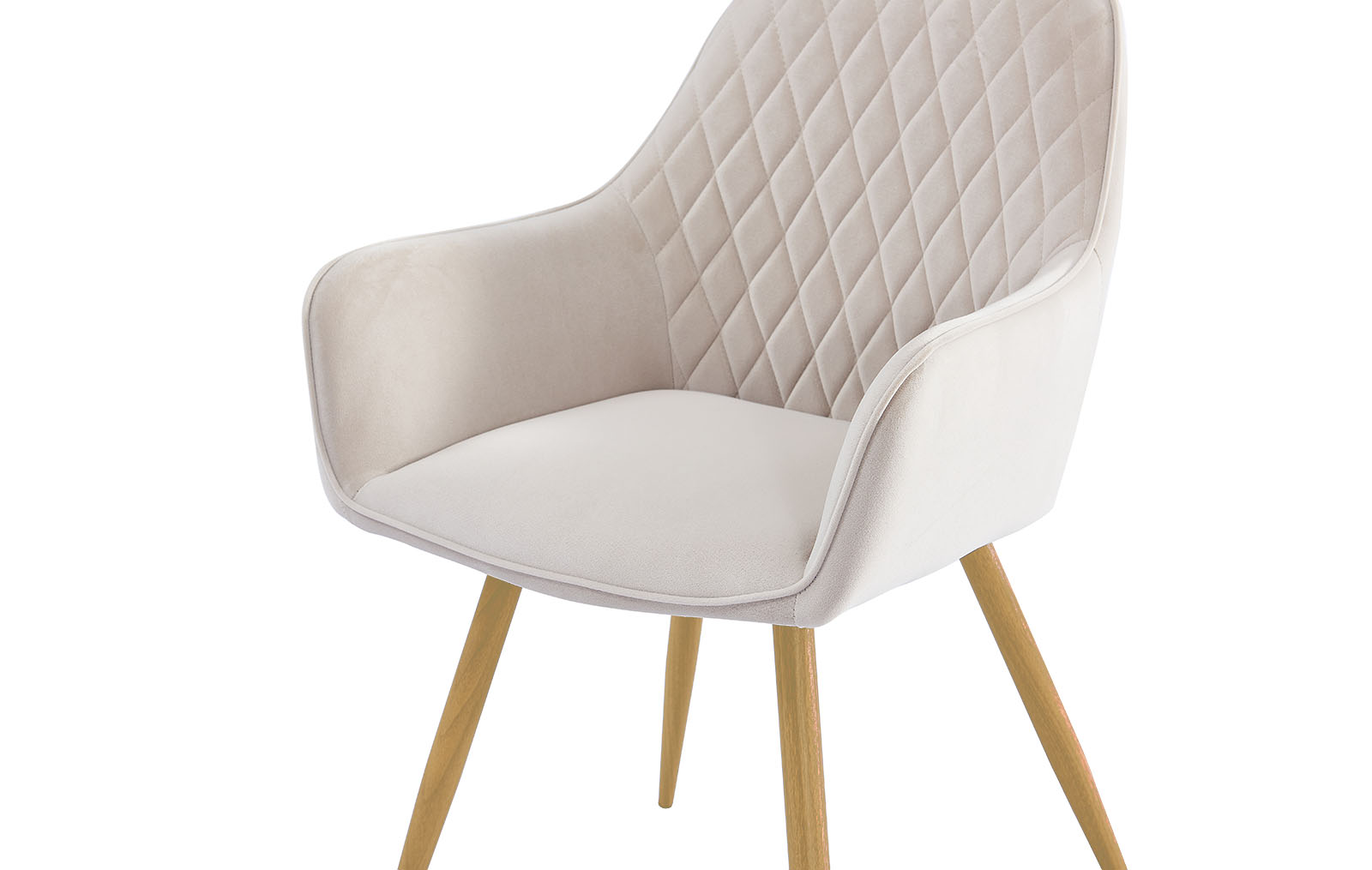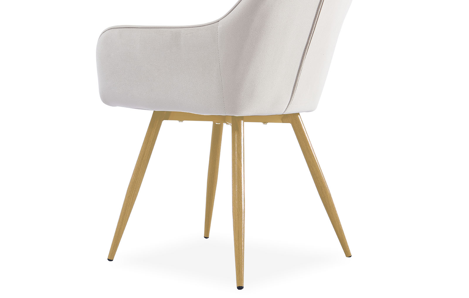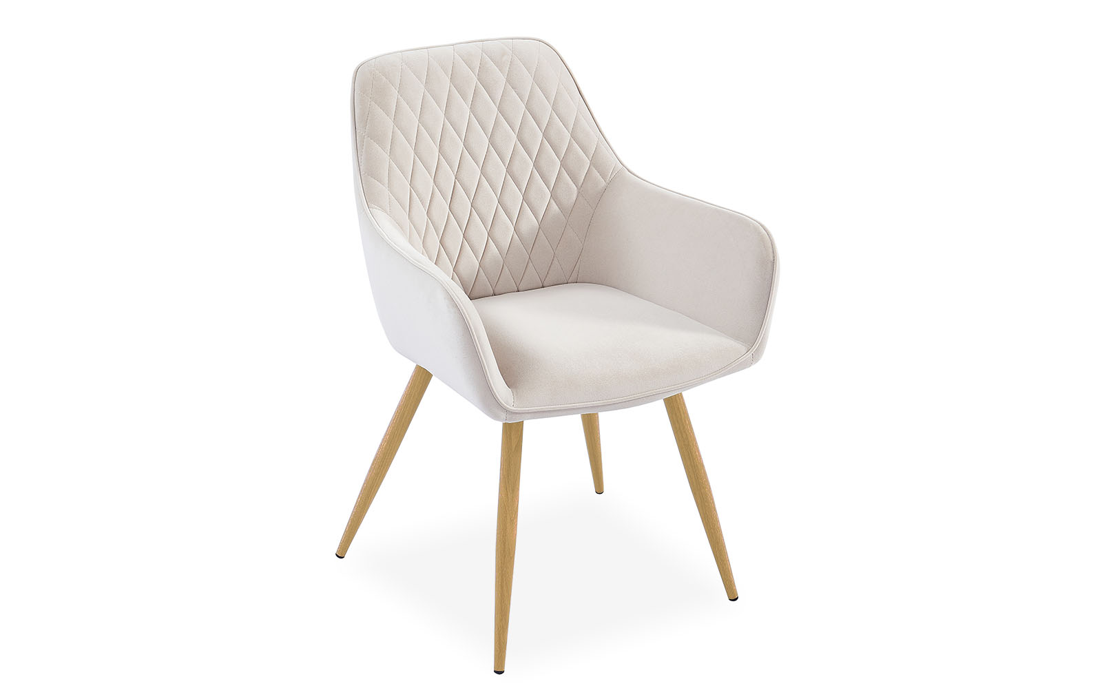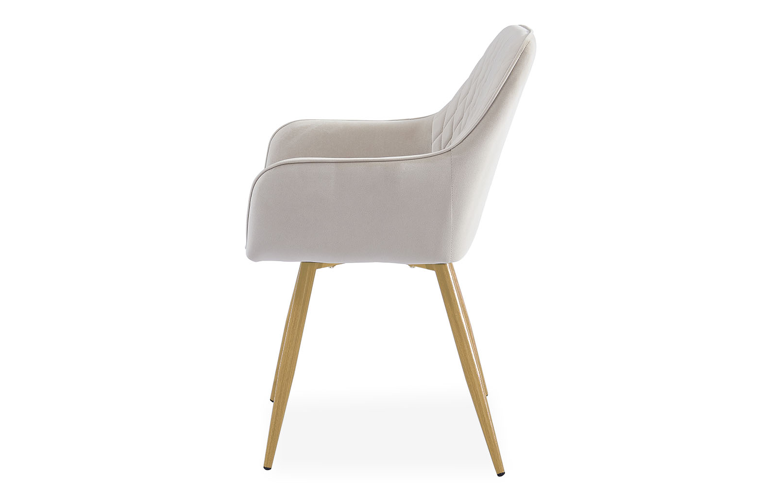 Высокая спинка с декоративной стежкой, мягкие подлокотники и сиденье, велюровая обивка благородного бежевого оттенка – все это делает данную модель стильной и удобной, подходящей для любого интерьера.