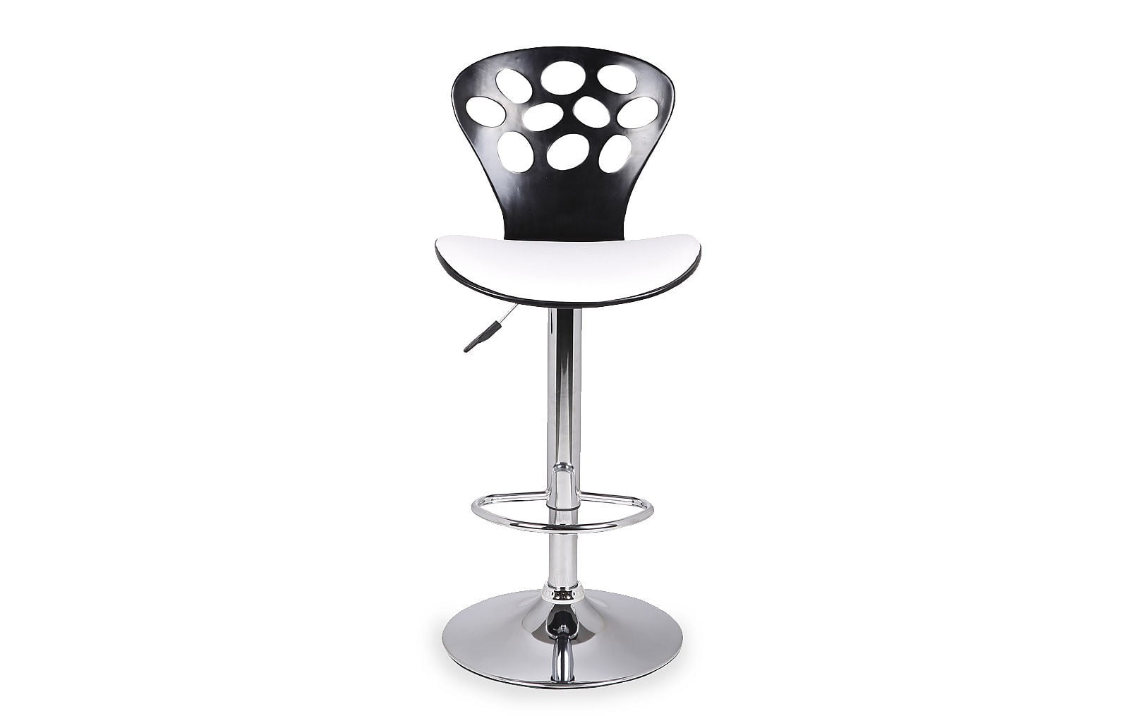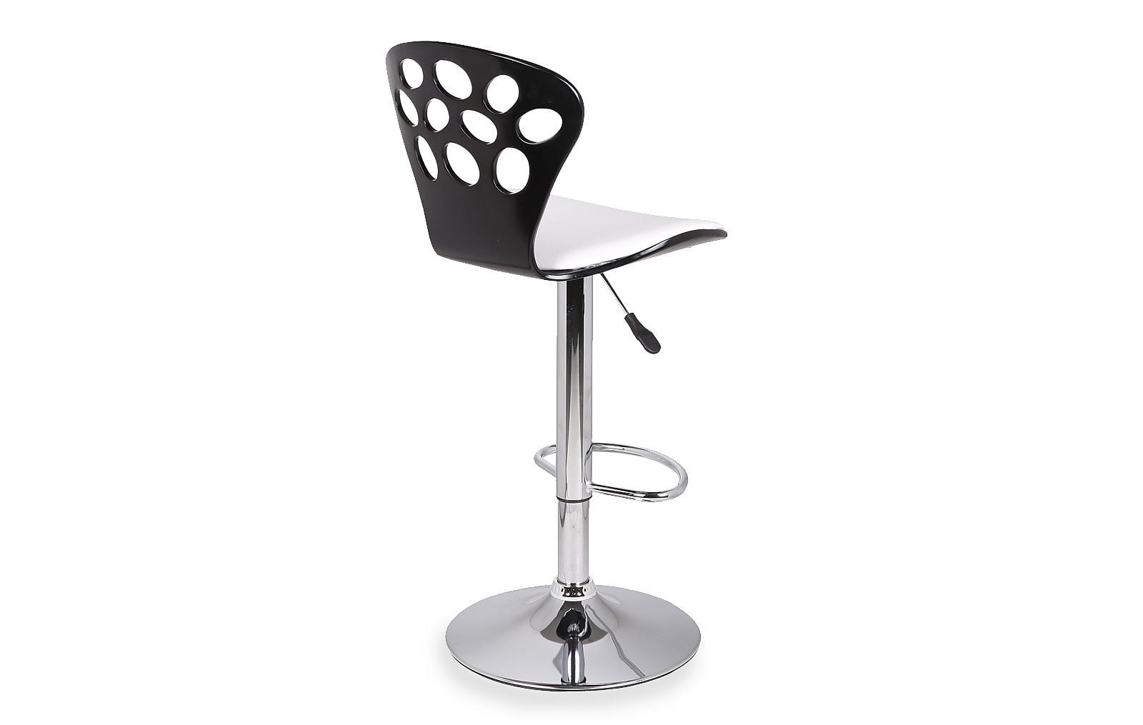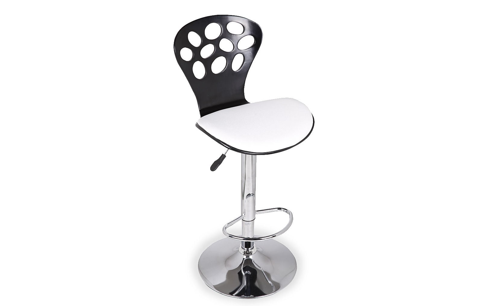 Сиденье обито белой экокожей. Сиденье регулируется по высоте от 62 до 83 см и может вращаться. Функция регулировки позволяет подобрать нужную высоту в зависимости от роста человека и высоты столешницы. Удобная спинка дает возможность сидеть с комфортом на протяжении долгого времени.