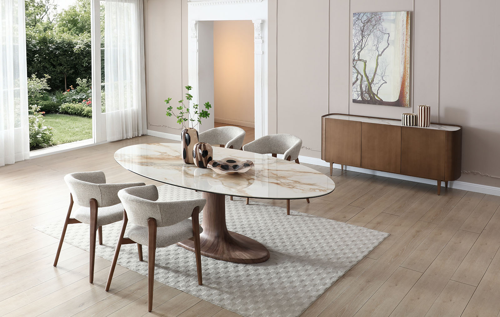 Мягкое сиденье и плавно изогнутая спинка создают комфорт даже во время длительных ужинов и встреч.