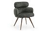Обивка из шенилла темно-зеленого цвета. Ножки — металлические, в матовом бронзовом оттенке, устойчивые и изящные.