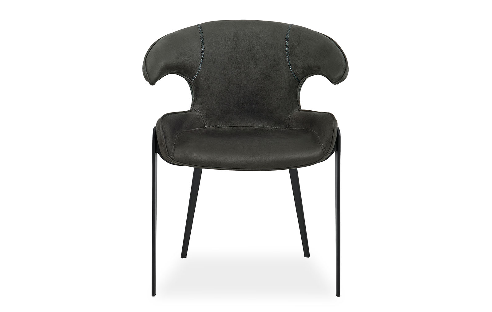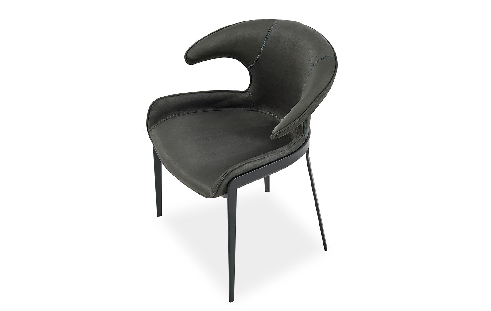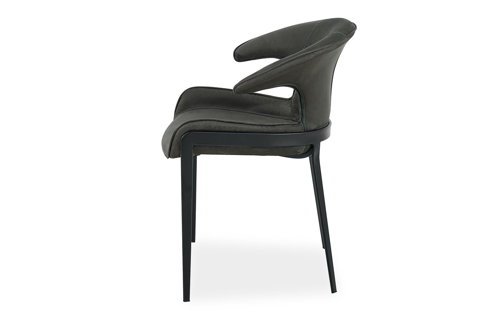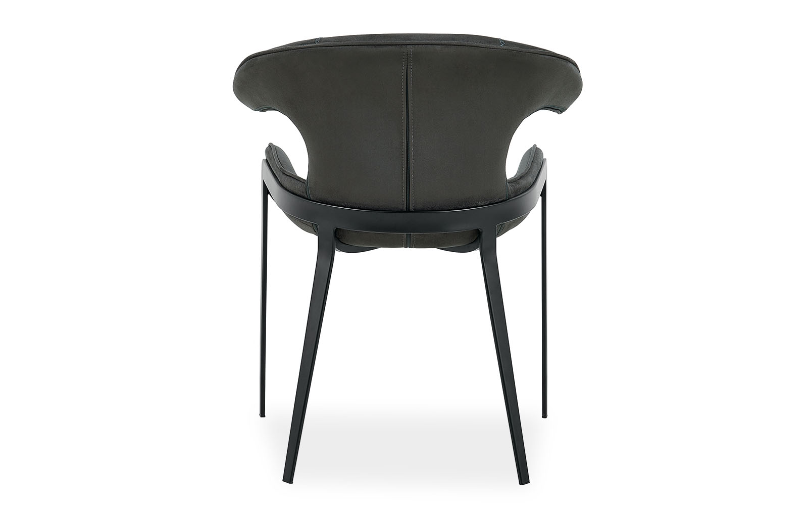 В основе стула – прочная стальная рама. Обивка графитового оттенка.