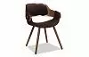 Обивка из коричневого велюра составляет гармоничный дуэт с ореховыми ножками и такими же частями спинки.