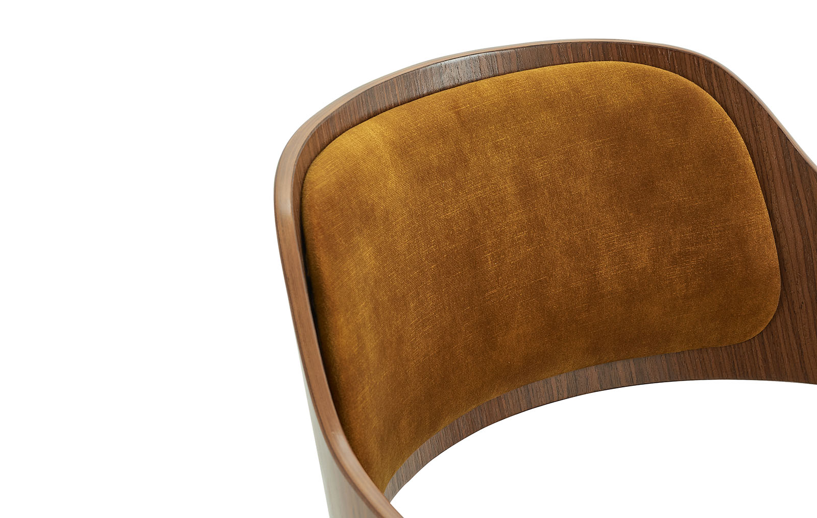 Обивка из велюра составляет гармоничный дуэт с ореховыми ножками и такими же частями спинки.