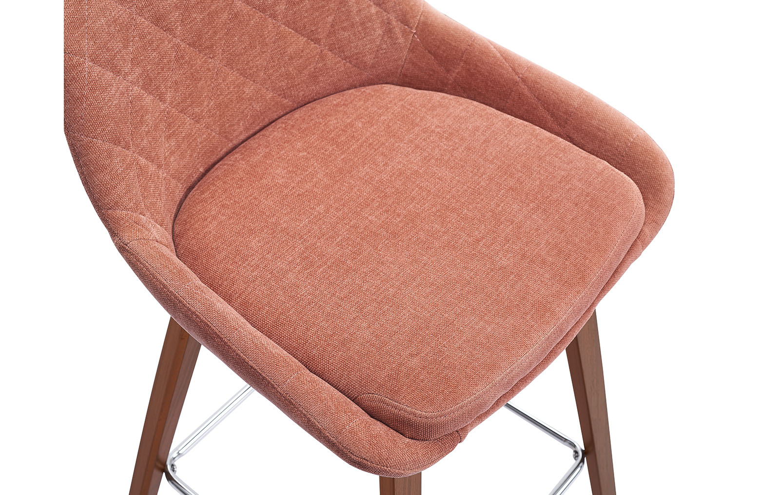Яркая обивка из ткани сочетается с ореховыми ножками.