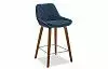Яркая обивка из ткани сочетается с ореховыми ножками.