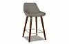Яркая обивка из ткани сочетается с ореховыми ножками.
