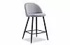 Сдержанный и элегантный полубарный стул с обивкой из шенилла серого цвета и черным основанием из металла.