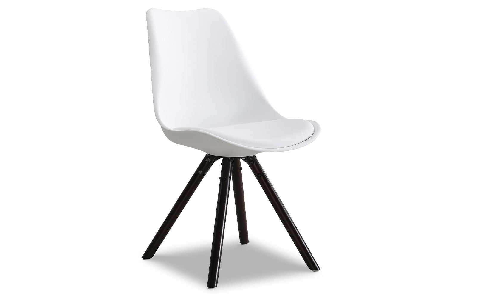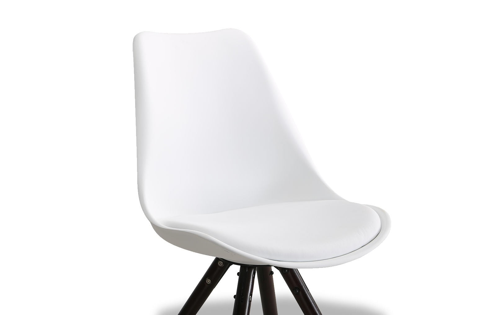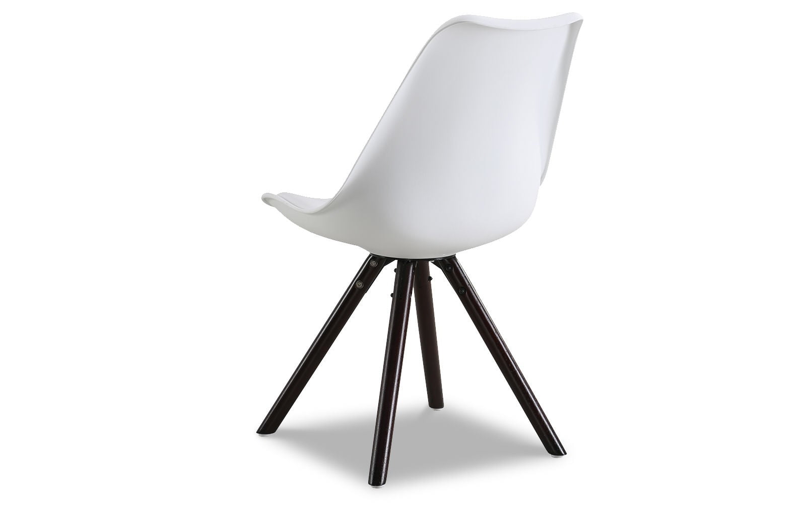 Стул Spirit белый/орех оригинального дизайна сочетает эргономичную форму сиденья, характерную для стульев 60-х, с ножками, устроенными по типу треноги. Пластиковая спинка удобно подстраивается под форму тела. Мягкая подушечка, обтянутая искусственной кожей, обеспечивает оптимальный комфорт. Ножки из натурального дерева (бук) тонированы в темно-коричневый оттенок.